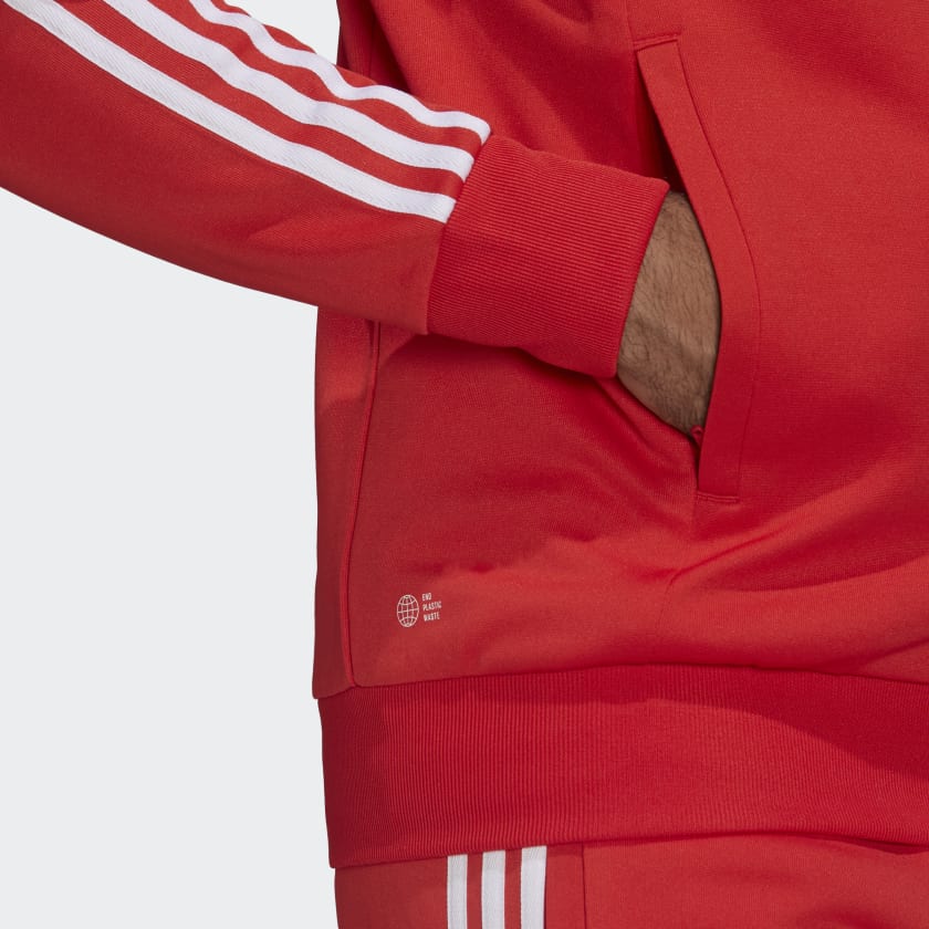 We're not saying that adidas introduced the track suit back in '64. But that doesn't mean others haven't said it. What's undeniable is that those signature 3-Stripes have been popping off of it for decades, whether on the sidelines, in stadiums or on the streets. Everyone from athletes to clubgoers has embraced it, and you can too with this track jacket. For an added bonus, it's supremely comfortable and made from Parley Ocean Plastic yarn that's sourced from recycled plastic.
