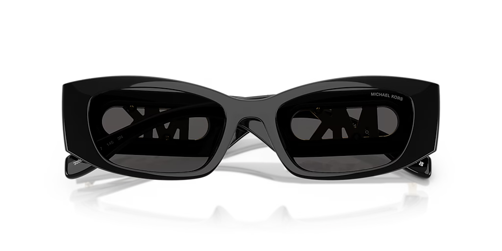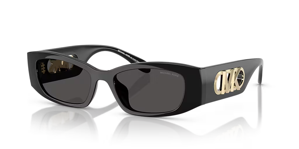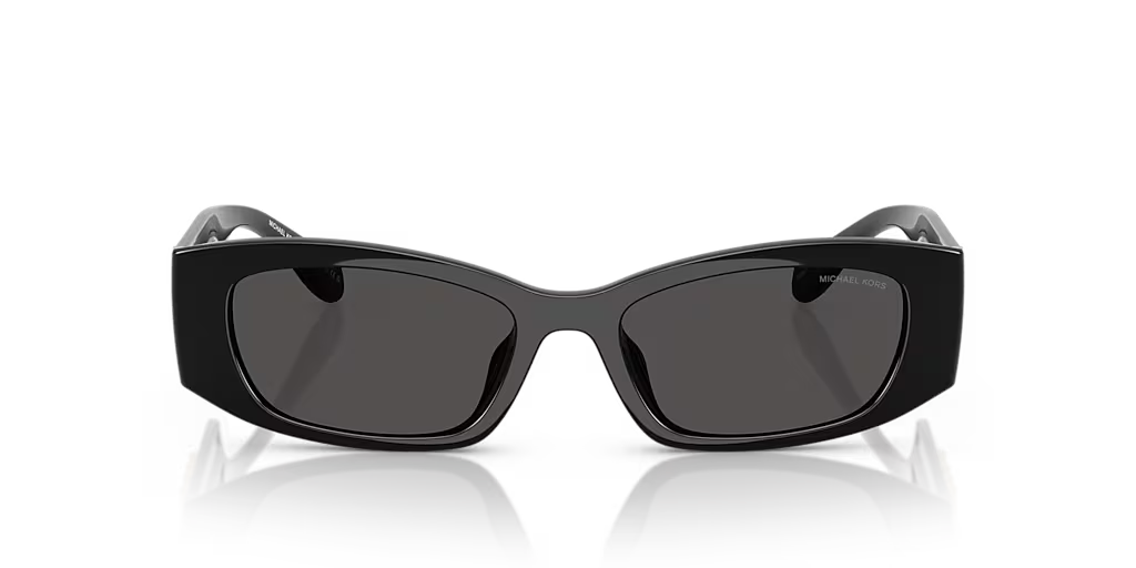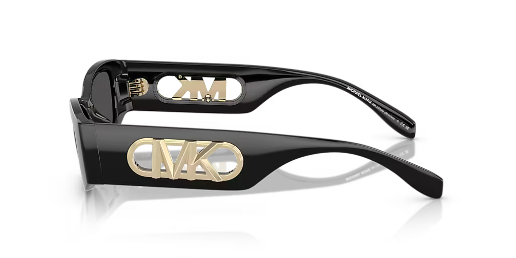 Michael Kors Rhodes sunglasses, with their irregular shape and a touch of sophistication, are a stylish choice. The lenses, in a sleek dark grey solid color, provide full sun protection. Paired with the elegant and charming black frames, these shades offer both style and functionality for everyday wear.