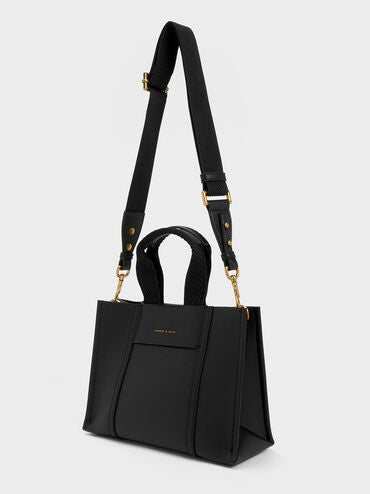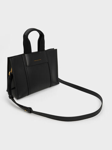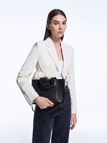 Whether you are running errands or headed out for brunch, the mini Shalia tote bag in black is a style essential that will keep everything you need by your side. In black for an effortlessly cool aesthetic, this chic bag will add structure to your looks. Carry yours by the thick double handles or clip on the sleek chain handle to achieve a more edgy aesthetic.