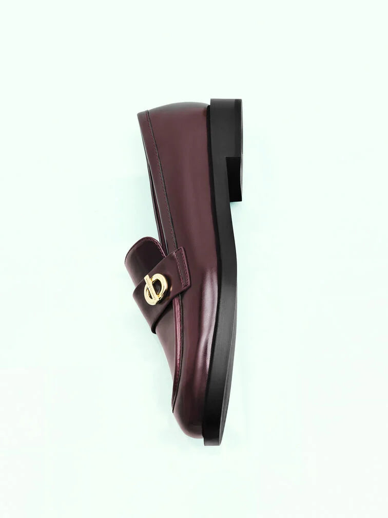 In beautiful burgundy, these Marley loafers will be a great addition to your shoe collection. The sleek loafer silhouette is always a classic, while the metallic accents add a hint of shine that elevates the look. Perfect for matching with both tailored corporate looks and cute babydoll dresses.
