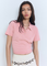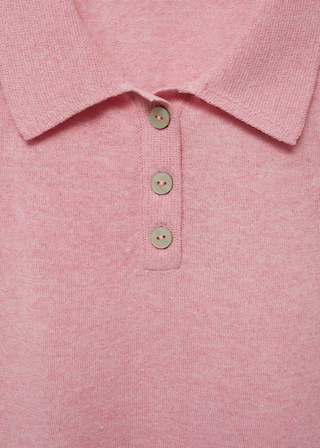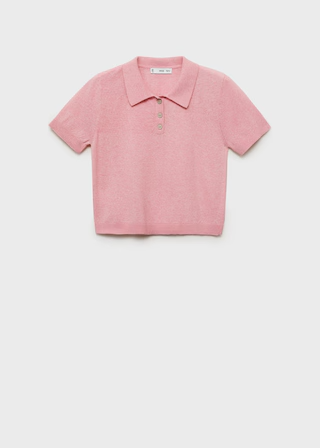 Cotton-blend fabric. Fine-knit fabric. Straight design. Crop design. Polo collar. Short sleeves. Button fastening at the neck. Composition: 58% polyester, 42% cotton. Designed in Barcelona. Manufacture: Türkiye. Dye/printing: Türkiye. Weave: Türkiye.