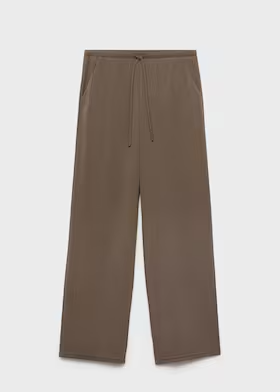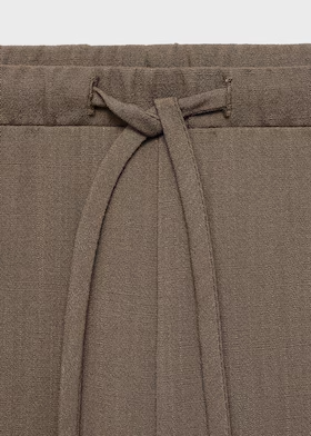 Long design. Straight design. Mid-rise. Elasticated waistband. Adjustable waist tie. No Fastening. Total look. Composition: 70% viscose, 18% polyamide, 11% polyester, 1% elastane. Designed in Barcelona. Manufacture: Cambodia. Dye/printing: China. Weave: China.
