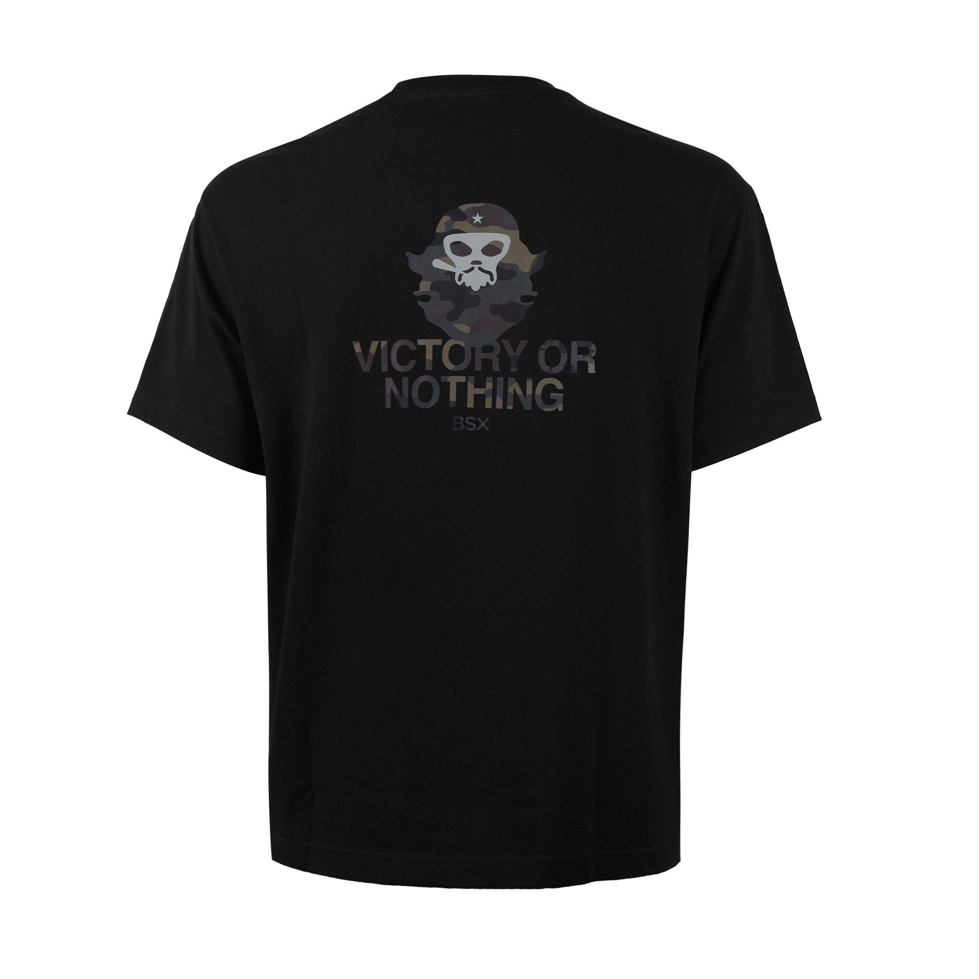 Unleash your bold side with the Che camouflage from BSX. Featuring a striking back design inspired by revolutionary spirit, this tee combines Che Guevara-inspired symbolism with a modern camouflage twist. The bold "Victory or Nothing" slogan captures the essence of perseverance and unyielding determination, while the front keeps it clean with the minimalist BSX logo.