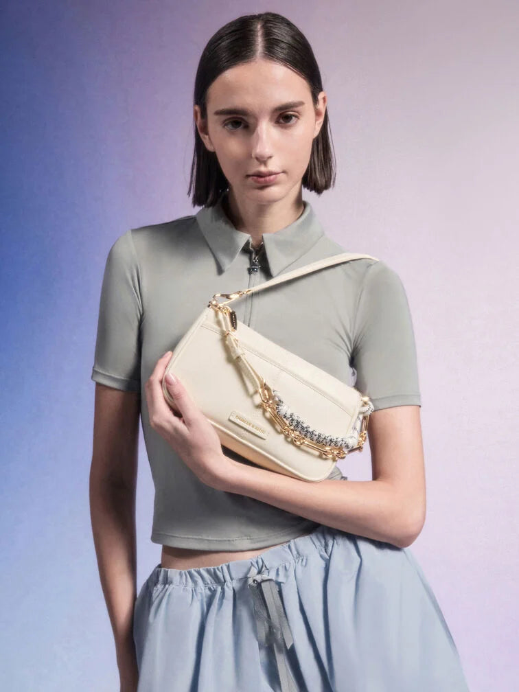 Thanks to the arrival of warmer weather, nautical motifs return to popularity. Featuring a knotted rope strap intertwined with glamorous gold-toned chain, our Addison shoulder bag is the perfect summer staple. Its compact size belies its practicality -- equipped with a detachable card holder, the Addison offers effortless organisation.