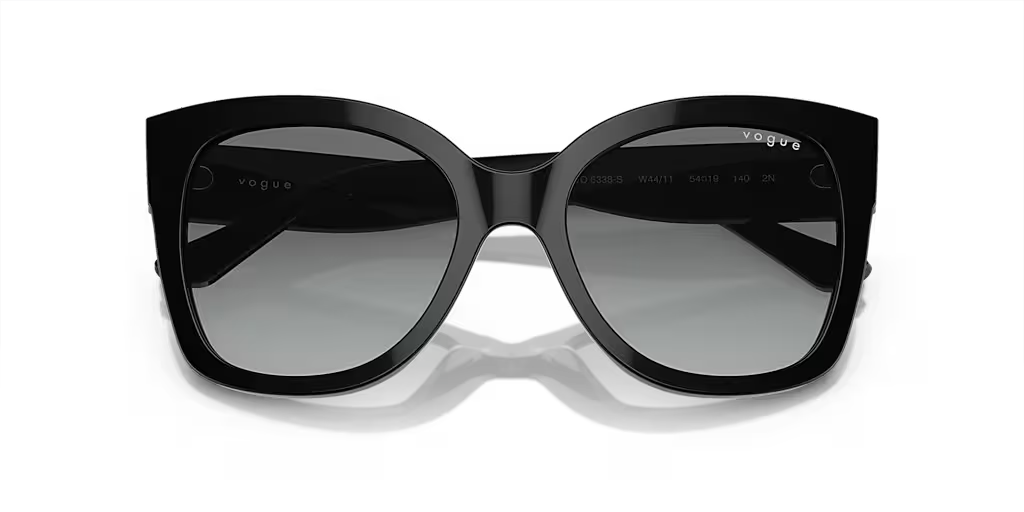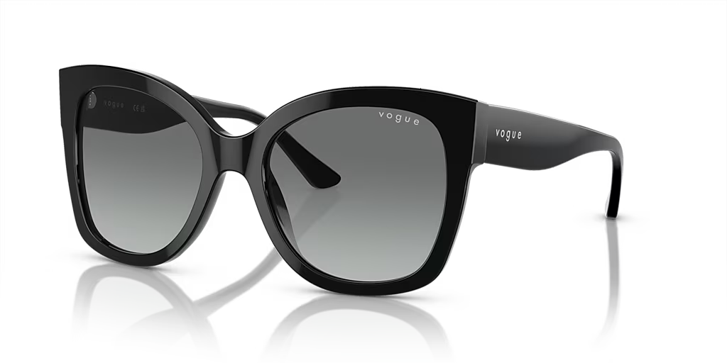 Black (W44/11) Sunglasses with Gray Gradient lenses (VO5338S W44/11 54) by vogue eyewear™. Size: 54-19-140, Shape: Square, Material: Plastic.