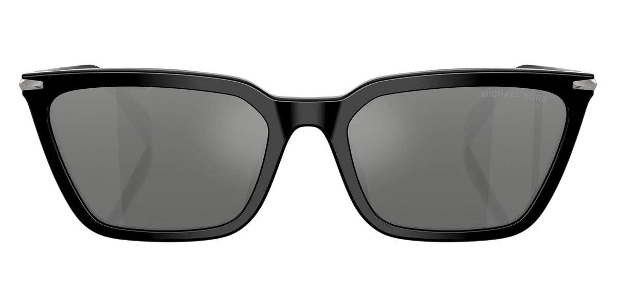 Black (300588) Sunglasses with Silver Flash Gradient Mirrored lenses (Everglades MK2250U 300588 58) by MICHAEL KORS™. Size: 58-19-145, Shape: Cat-Eye, Material: Acetate.