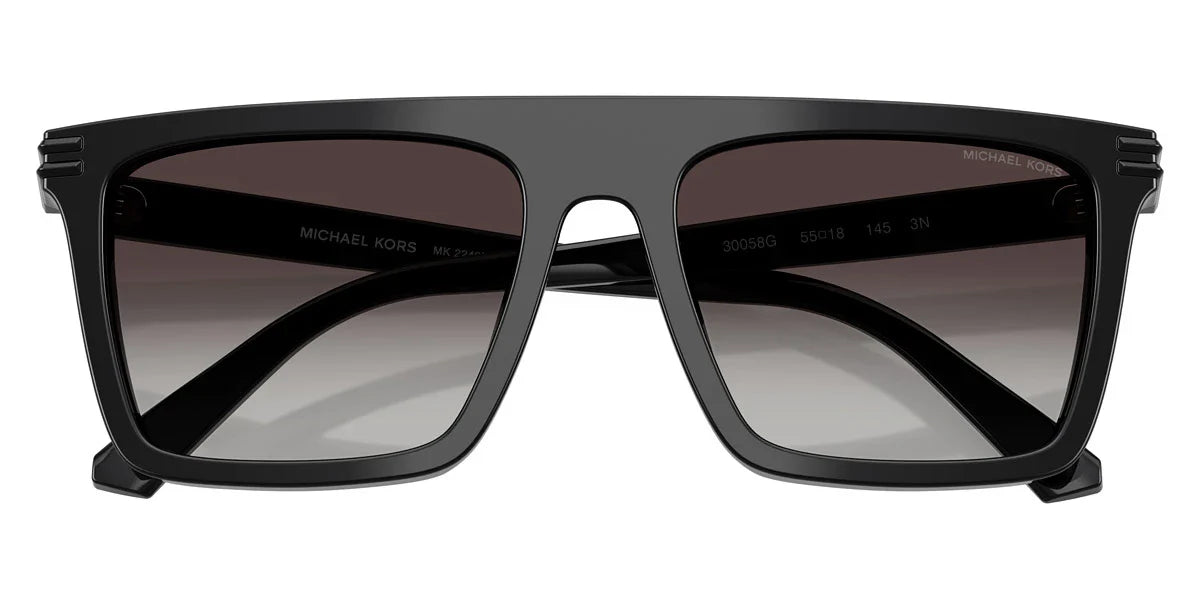 Black (30058G) Sunglasses with Dark Gray Gradient lenses (Edgewater MK2249U 30058G 55) by MICHAEL KORS™. Size: 55-18-145, Shape: Square, Material: Acetate.