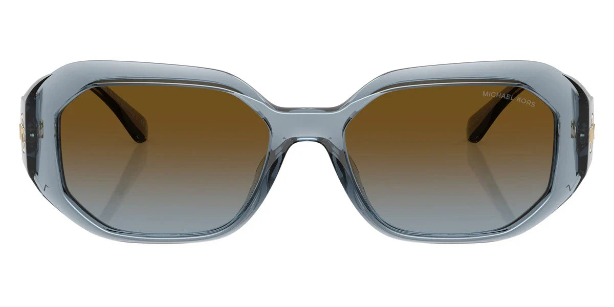 Denim Transparent (401413) Sunglasses with Brown Blue Gradient lenses (Siesta Key MK2240U 401413 54) by MICHAEL KORS™. Size: 54-17-140, Shape: Irregular, Material: Injected.