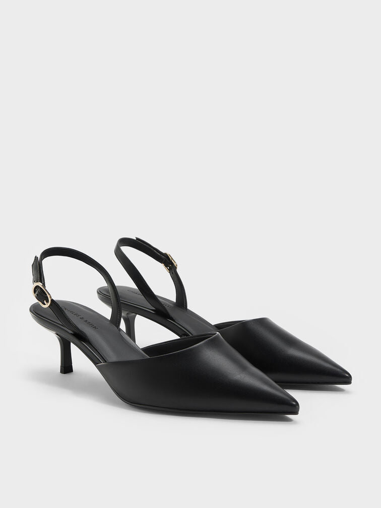 You can never go wrong with a classic pair of slingback pumps -- especially in a timeless, versatile black finish. Ours sit on dainty kitten heels that offer a comfortable yet flattering height boost.
