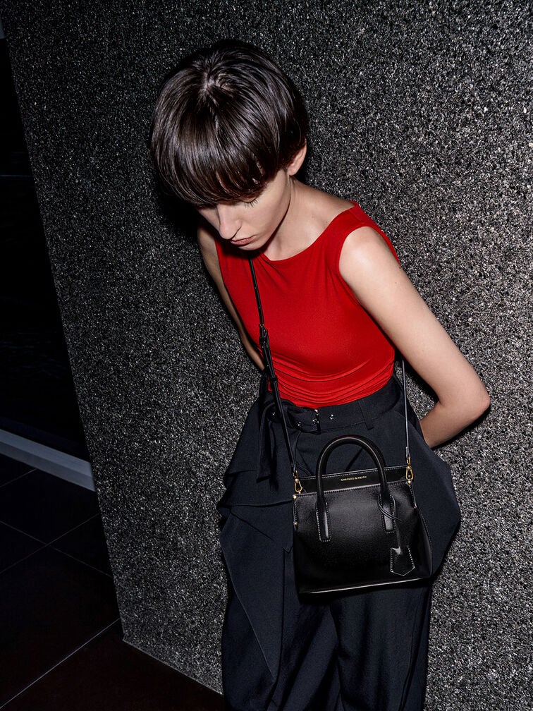 Every modern woman needs a top-handle bag in her wardrobe, and the Rene bag fits the bill. Featuring a structured bottom and clean lines, the minimalist silhouette exudes timeless elegance. Details like subtle metallic hardware and a classic bag tag enhance its refined appeal. Secured by magnetic closure, it will be able to hold your everyday essentials while keeping them easily accessible. You can carry the Rene by its sturdy top handles, or attach the adjustable strap for more styling options.