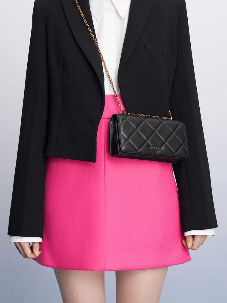 Bridging two of our favourite trends — quilt and chain strap — our stunning Paffuto wallet is headed straight for the top spot as your wardrobe staple. Simple yet sophisticated, the gorgeous quilted material in an ebony black finish definitely fits the bill for a versatile and stylish companion. With a chain handle to keep it by your side, this long wallet will work with any sophisticated look, but if you are short on ideas, try it with a shirt dress and slingback pumps.