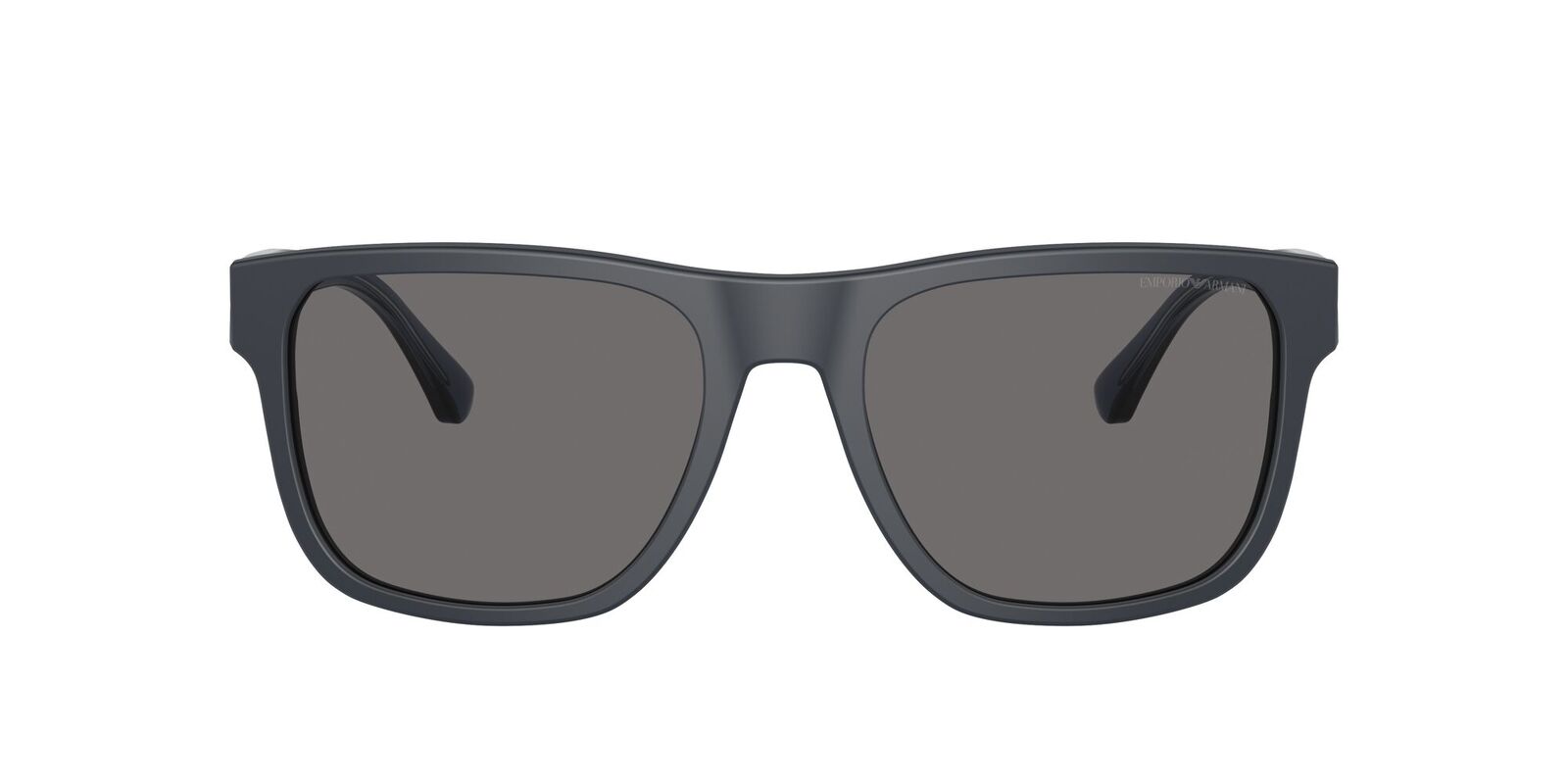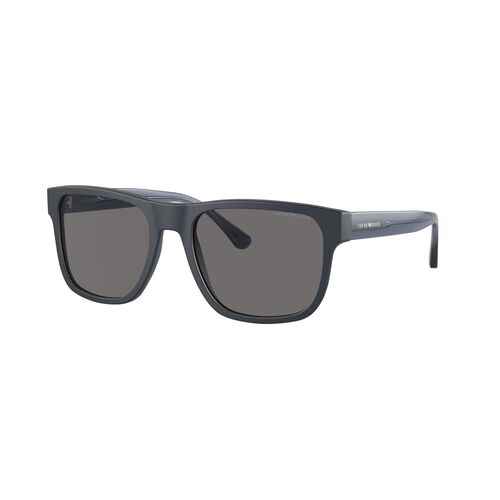 Emporio Armani Sunglasses. Series number: EA4163. Color code: 508881. Shape: Square. Lens Width: 56 mm. Lens Bridge: 19 mm. Arm Length: 145 mm. 100% UV protection. Polarized. Frame Material: Plastic. Frame Color: Matte Blue. Lenses Type: Polarized Dark Grey. Rim Style: Full-Rim. UPC/EAN code: 8056597975032. Emporio Armani Polarized Dark Grey Square Men's Sunglasses EA4163 508881 56.