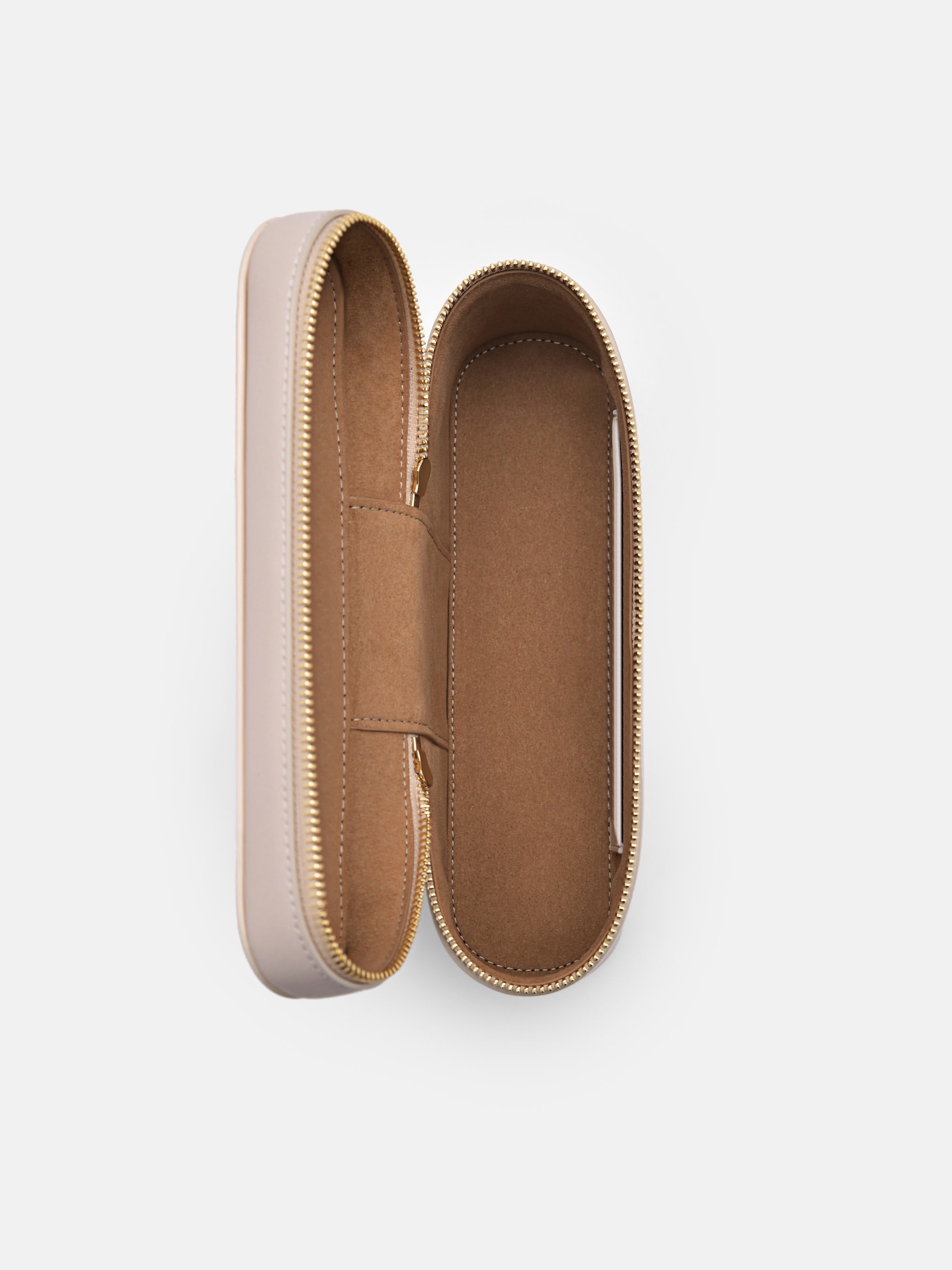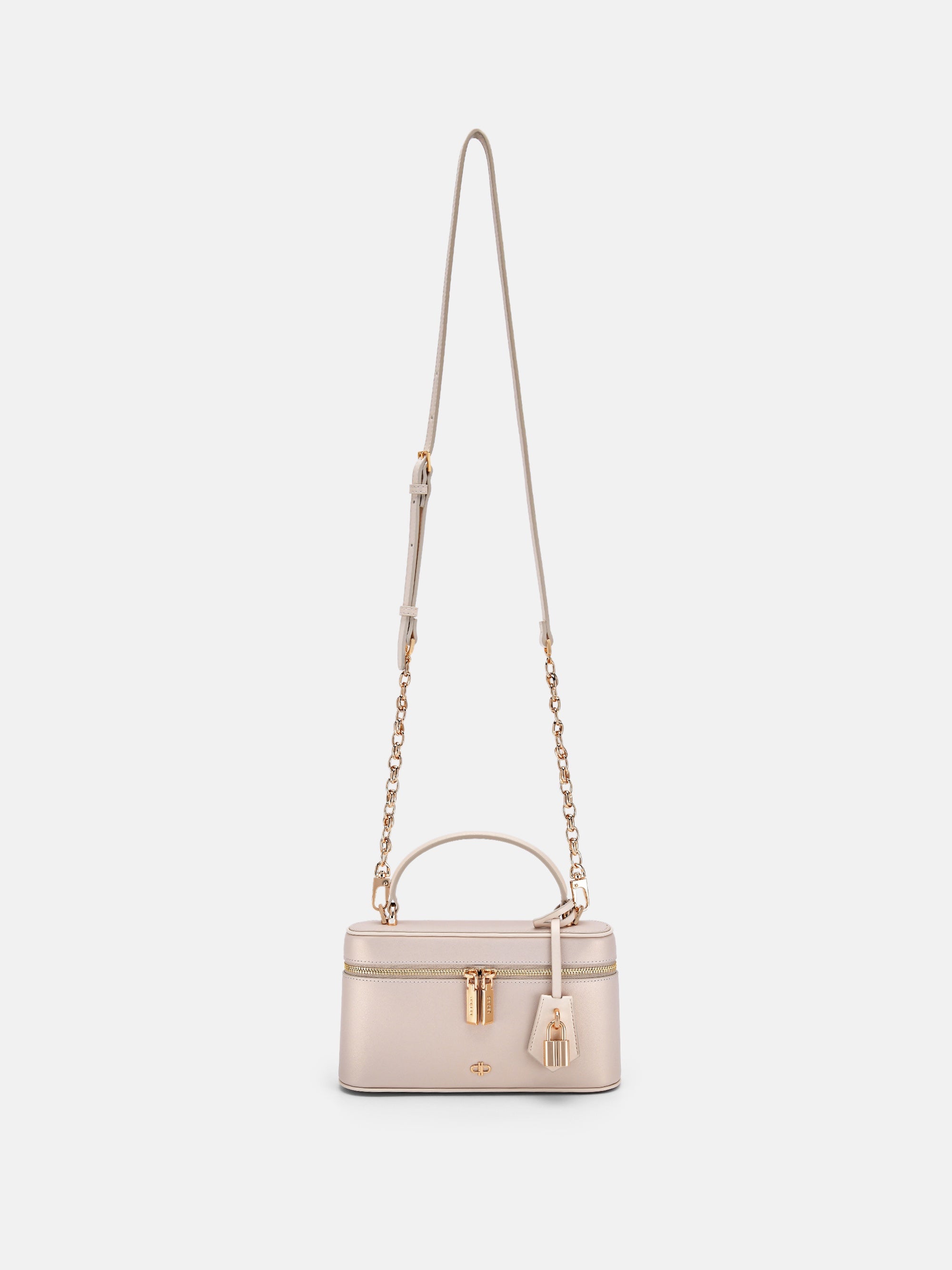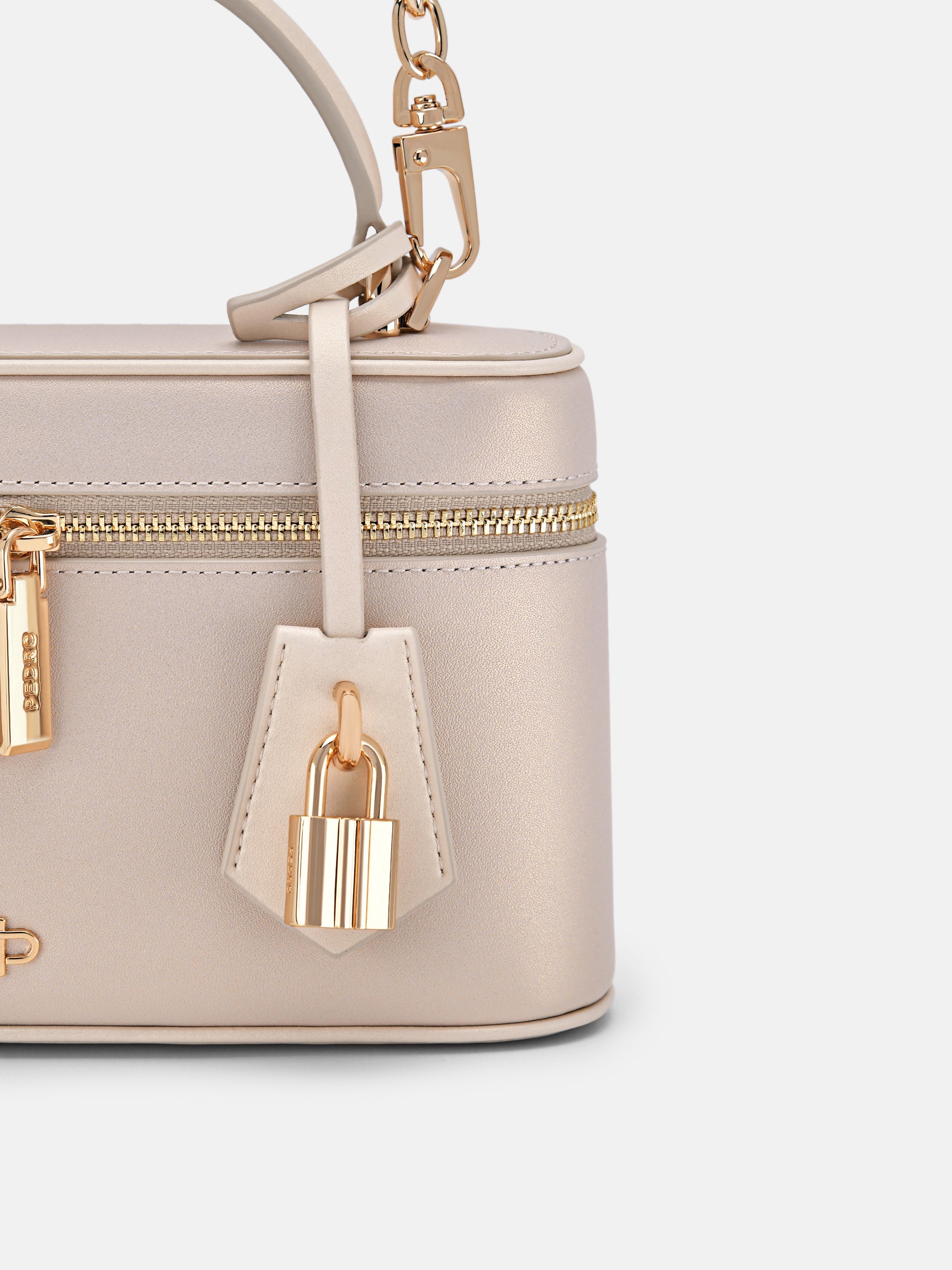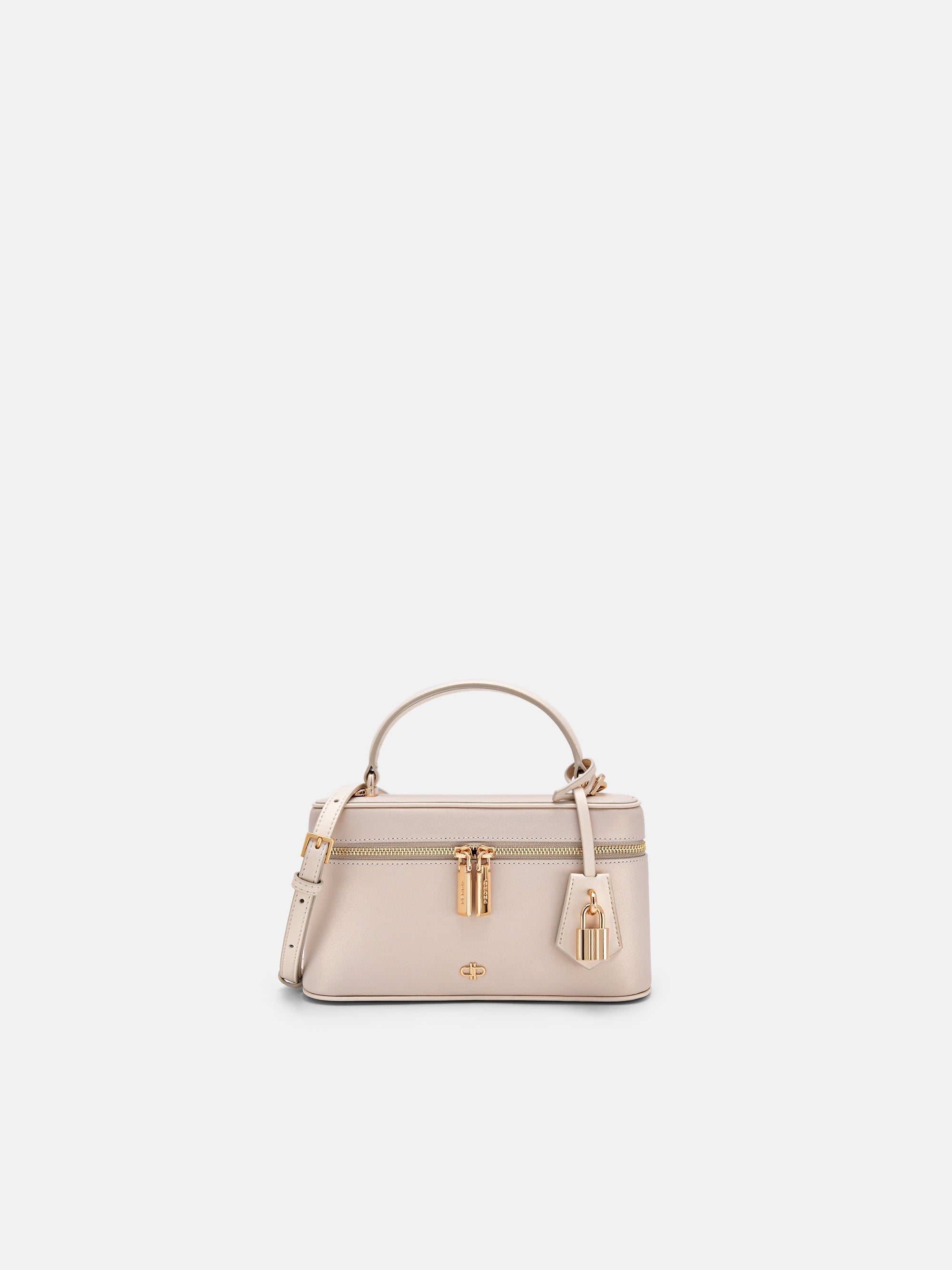 Crafted from supple calf leather, embrace refined structure and modern ease. Its sleek silhouette is punctuated by polished gold-tone hardware, with a dual-zip fastening that nods to timeless travel essentials. Designed for versatility, it features both a top handle and an adjustable shoulder strap, offering effortless transitions from day to evening. A discreet padlock charm adds a final touch of understated elegance.