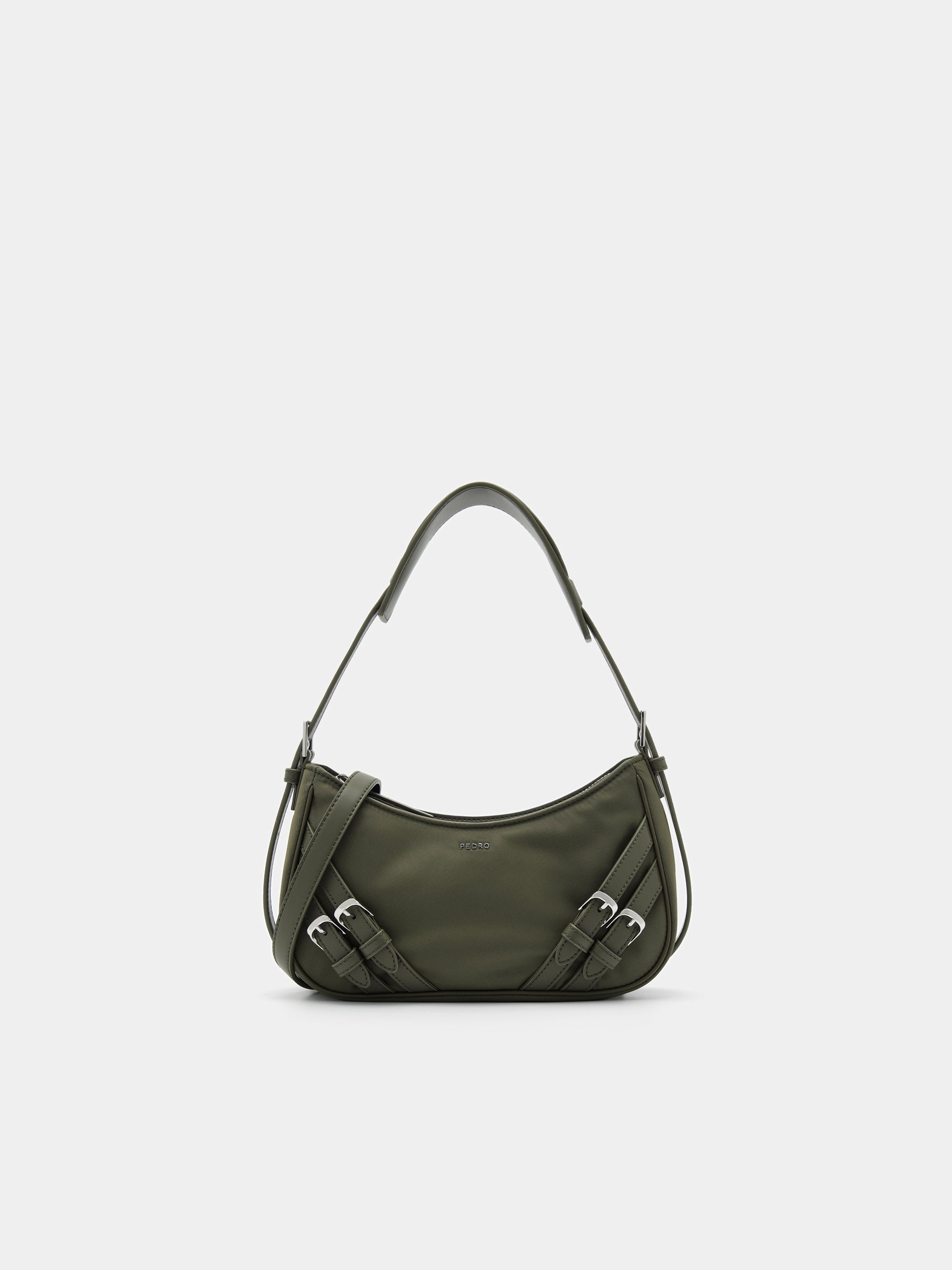A bag designed not just to carry, but to command attention. With its modern, multi-buckled design, this piece is a bold statement of precision and innovation. The rounded form, shaped by curves that challenge the expected, is crafted in durable nylon with intricate buckle detailing adding depth to its contemporary silhouette.