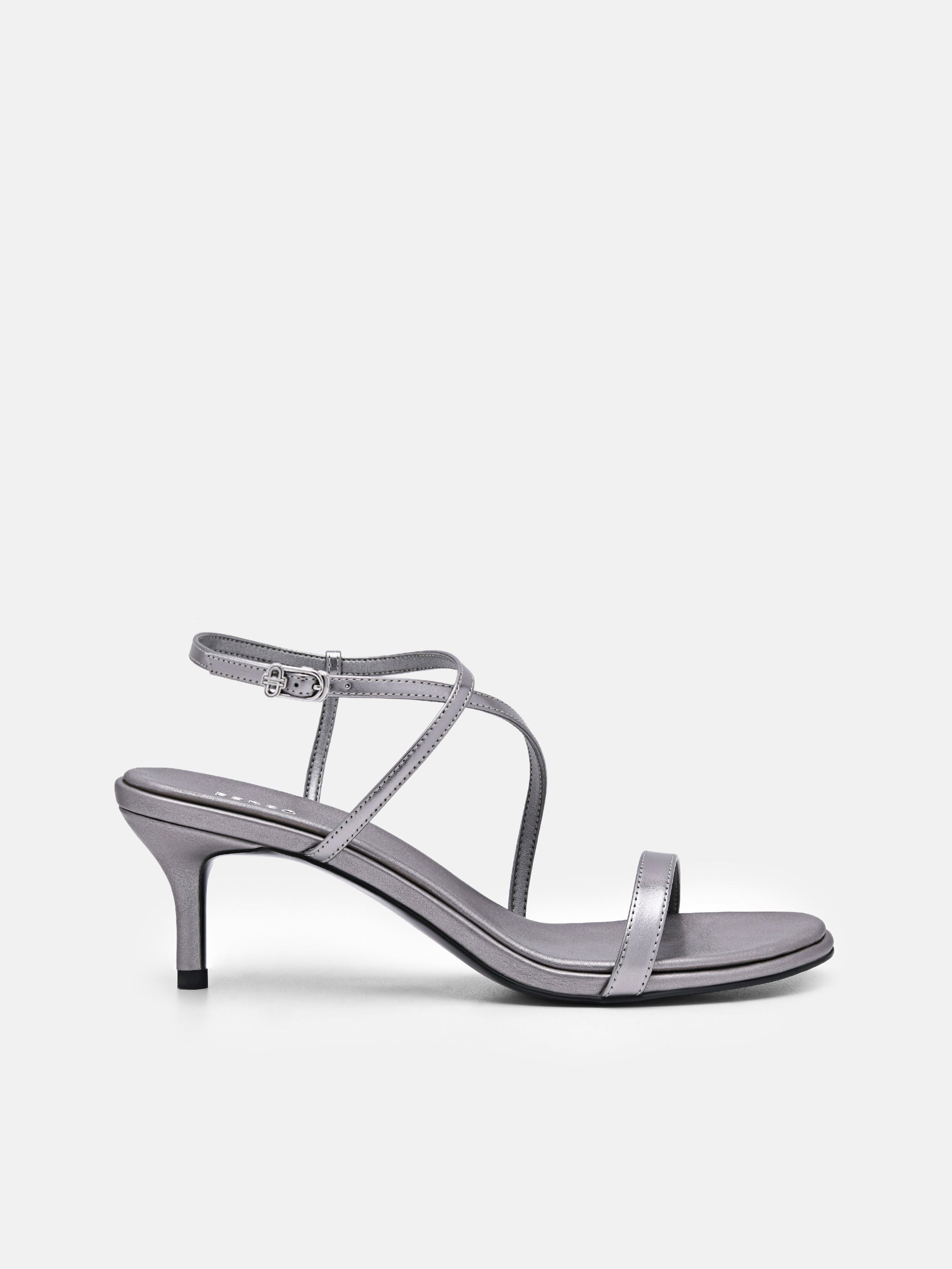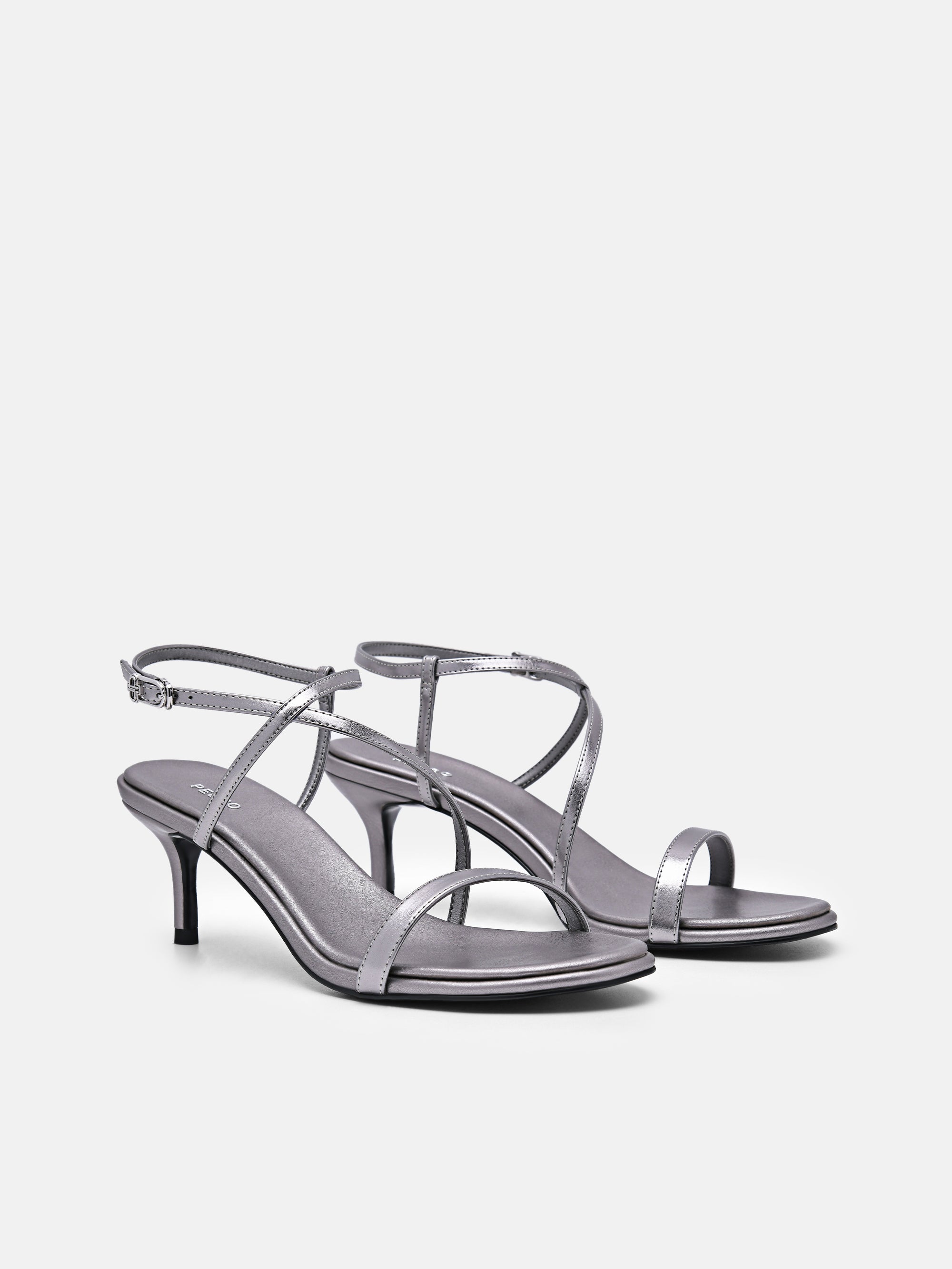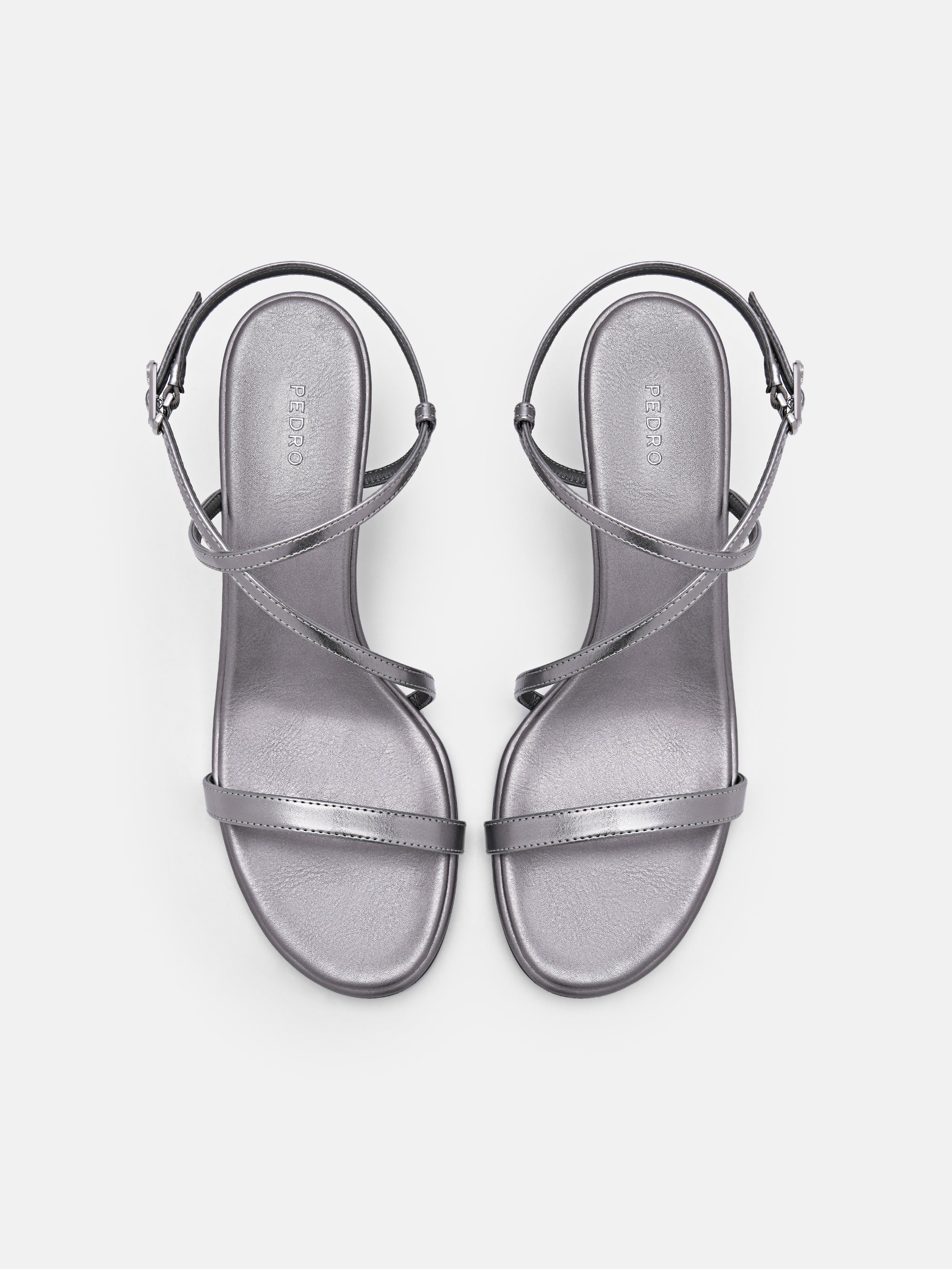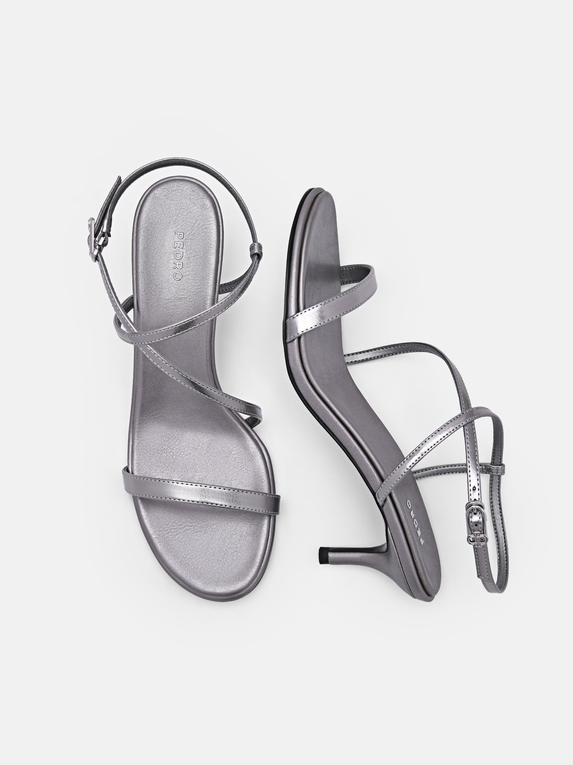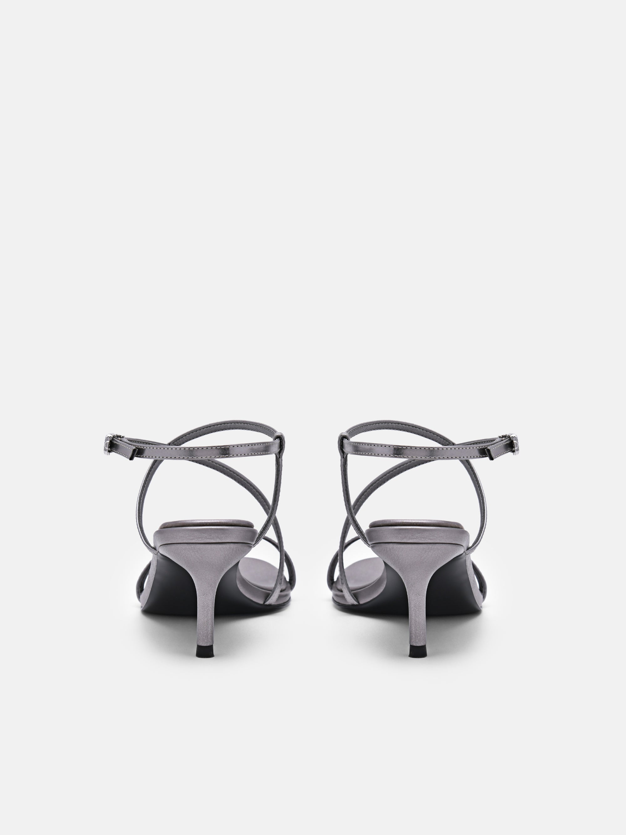 With a svelte, graceful profile, these sandals combine refined minimalism with thoughtful design. The strappy upper, secured by a delicate ankle closure, creates a light yet commanding silhouette, while the comma heel adds a subtle twist of architectural interest.